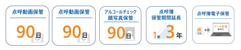 対面点呼動画保管90日⇒10名まで(以後5名ごとに追加必要)